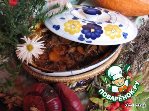- Говядина (мякоть, порезанная на небольшие кусочки) — 1 кг