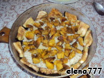 На мясо - груши, порезанные полукольцами. Слегка посолить и поперчить.