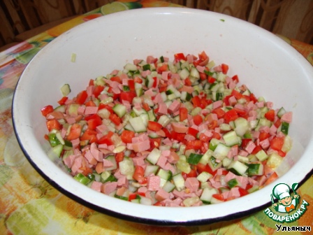 Огурец нарезать кубиками.