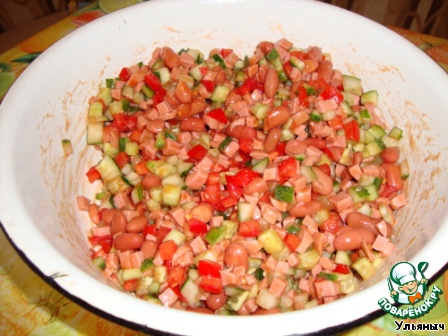 Добавит в салат фасоль вместе с томатным соусом, который послужит заправкой.