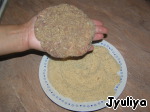 Придать форму плоской лепешки. Тщательно обвалять в сухарях.