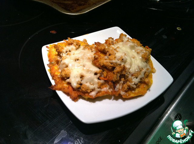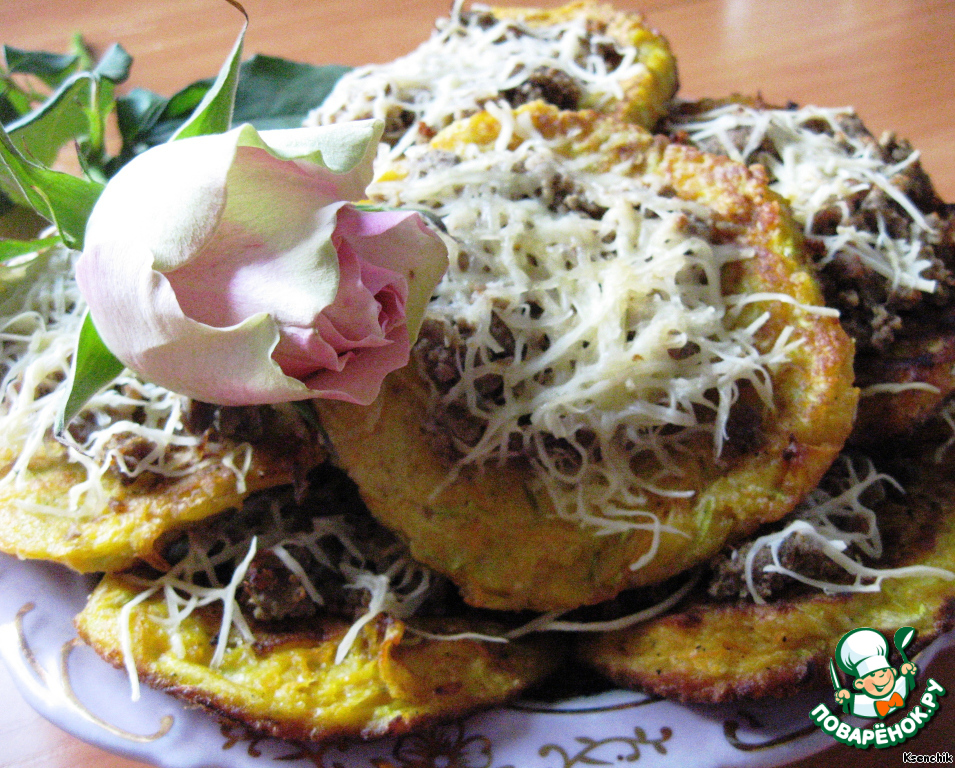 Рецепт «Кабачково-морковная лепешка с фаршем и сыром»: