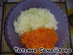 Трем на крупной терке кабачок и морковь. Смешиваем.