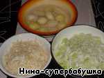 Лук-порей нарезать колечками. Сельдерей очистить и натереть на крупной терке. Картофель очистить и нарезать небольшими кубиками.