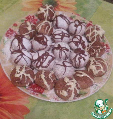 Поцелуйчики чертиков - необычно. Шарики за счет крахмала очень нежные и рассыпчатые. Откусываешь и замираешь! Они как-бы "взрываются" во рту, и дыхание на миг останавливается. Поэтому, "Поцелуи с чертиком". Просто и легко. А вот и рецептик: