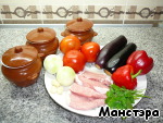 Подготовить мясо и овощи для готовки: мясо промыть и слегка отбить; овощи промыть; баклажаны и лук очистить, перец болгарский освободить от семечек.