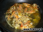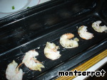 Форму для пудинга смазываем маслом, на дно укладываем креветки,