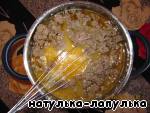 В яично-молочную смесь добавляем фарш, и перемешиваем.