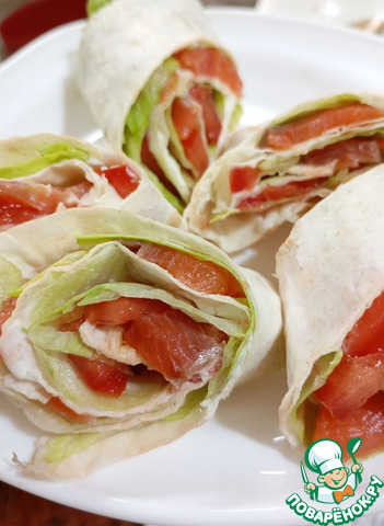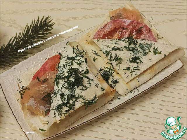 Рецепт «Рулет из лаваша с сeмгой и помидорами»: