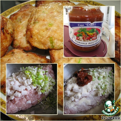 добавить в фарш сало+лук+манка+аджика+соль по вкусу