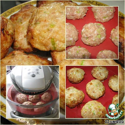 в аэрогриль поставить низкую полочку , а на неё я поставила силиконовую форму на которую разместила сформированные котлетки -