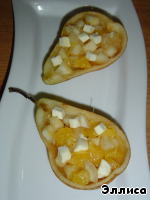 Мякоть груши, половину апельсина нарезаем небольшими кубиками, также поступаем и с брынзой (брынза должна быть малосоленой, практически пресной), и аккуратно перемешиваем.