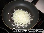 Лук репчатый режем кубиками, обжариваем на оливковом масле до образования золотистой корочки