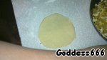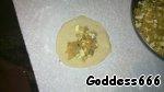 В серединку выкладываем ложечку начинки. Защипыпаем края и выкладываем на смазанный растительным маслом противень.