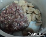 Смешиваем фарш+грибы+вареный рис+приправа для фарша, перемешиваем... Начинка готова...