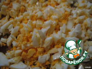 Фасоль откинуть на ситечко и промыть под холодной водой. Добавить к остальным продуктам