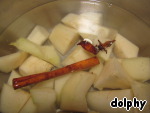 Грушу, корицу и звездочку бадьяна поместите в кастрюлю и залейте 4 1/2 стак. холодной воды. Я делала половину дозы, поэтому у меня только одна палочка корицы и ползвездочки бадьяна.