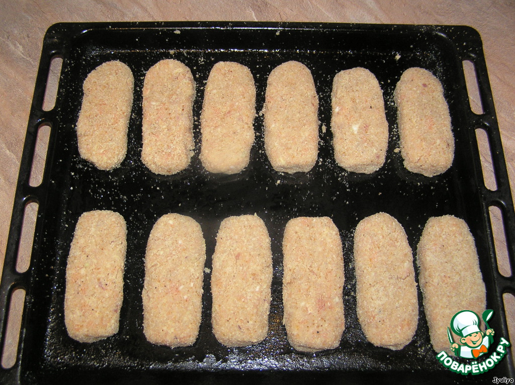 Рецепт «Рыбные палочки под молочно-сырным соусом»: