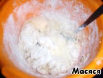 Затем добавим муку и замесим тесто. Оно должно быть плотное, мягкое и не прилипать к рукам! Муки я указала 2 стакана, но смотрите сколько тесто возьмет! Может понадобиться больше или меньше!