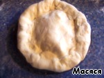 Края большей части слегка заворачиваем в сторону меньшей части теста и защипываем - то есть соединям края меньшей и большей лепешки.