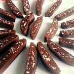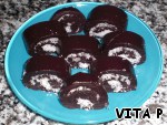 Порезать на кусочки, очень вкусный десерт! Очень необычные на вкус рулетики - ешь вроде шоколад, но жуёшь желейную конфету.