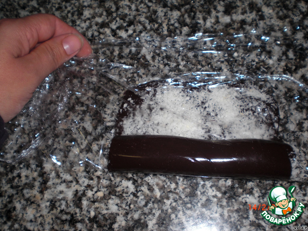 Выложить слоем до 0,5 см на пищевую плёнку.