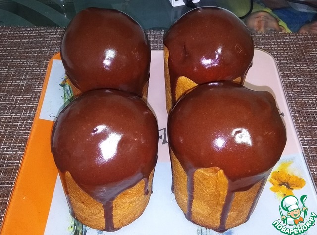 Сахарную пудру смешать с какао-порошком, добавить молоко разогретое, сливочное масло размягченное, ванилин по желанию, все это хорошенечко растереть и получится очень красивая блестящая глазурь, застывает очень быстро, делать когда уже выпечка готова, а если вдруг застынет, добавьте еще немного масла либо молока.