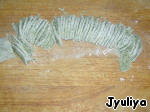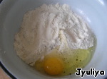 Замесить тесто: яйцо + мука + 2 ст. ложки воды, соль, перец.