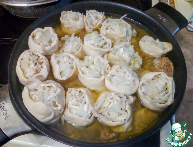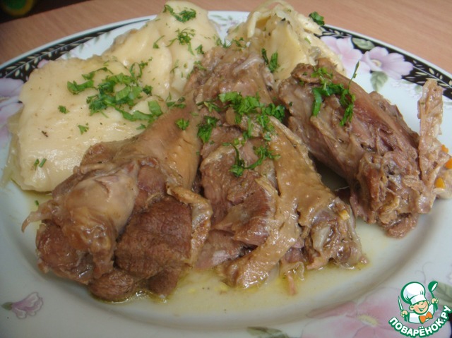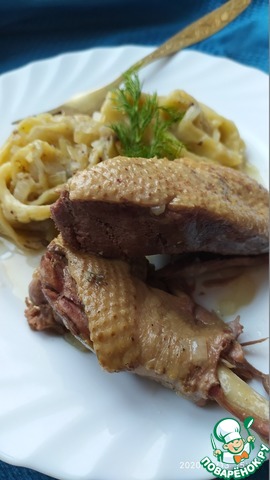 Рецепт «Тушеная утка с луковыми рулетами»: