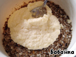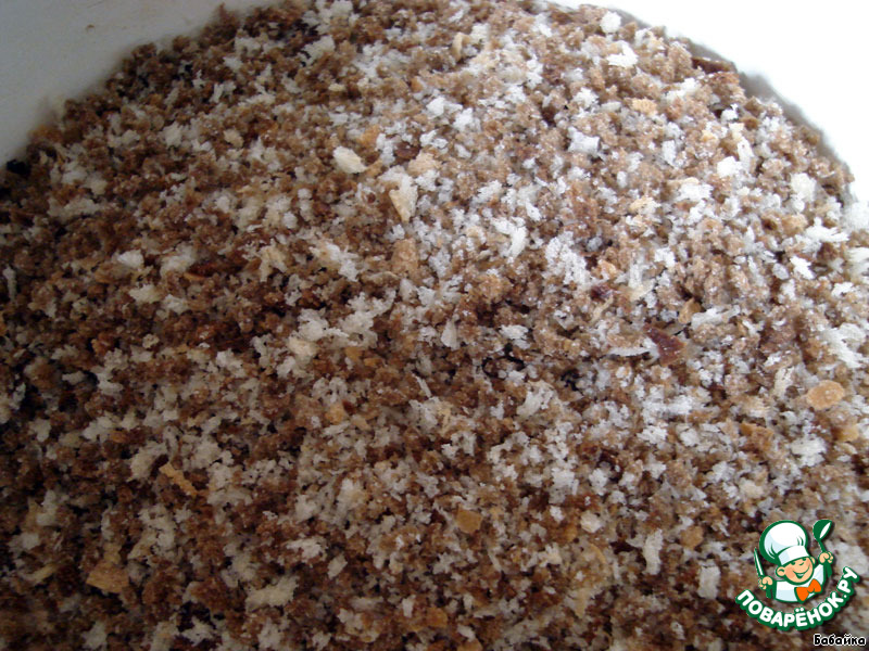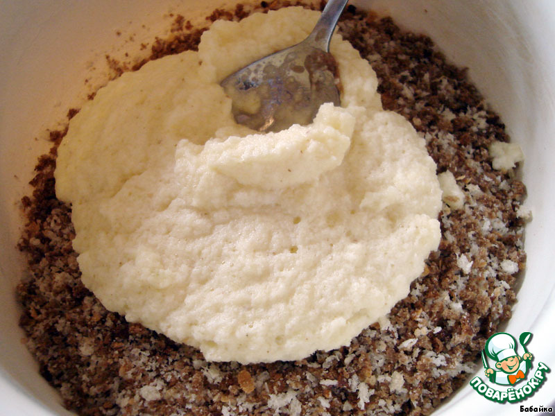 Измельчаем, смесь добавляем к хлебной крошке. -