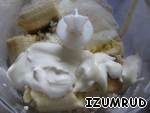 Оставшийся творог + банан + сметана + ванильный сахар.