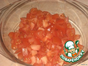 Выложить все ингридиенты в сотейник, посолить, поперчить, добавить зелень, сушеный базилик.