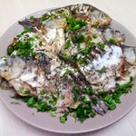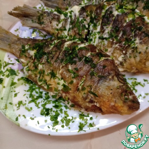 Подфартило, так подфартило! Получила в подарок с десяток карпов, мелочь. И вспомнились мне мамины караси. Карп не карась, но... Я рыбу люблю в любом виде и кости мне не помеха, но вот мои мужчины!