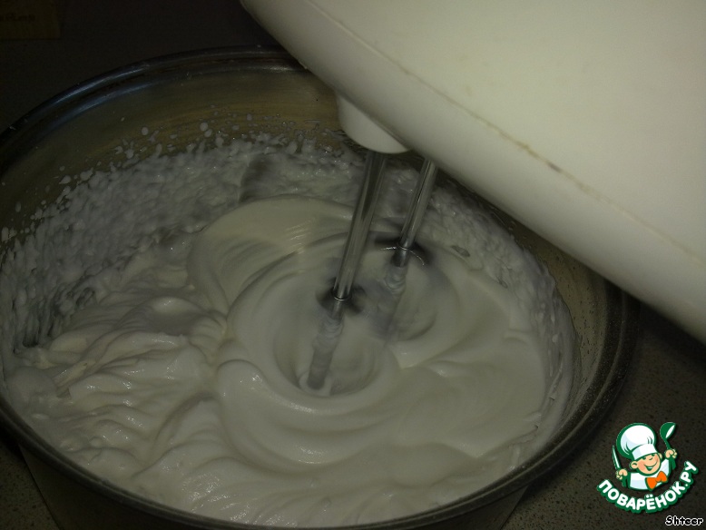 Аккуратно соединить эту массу с оставшимися белками, перемешать движениями снизу вверх, как бы заворачивая тесто в белки.