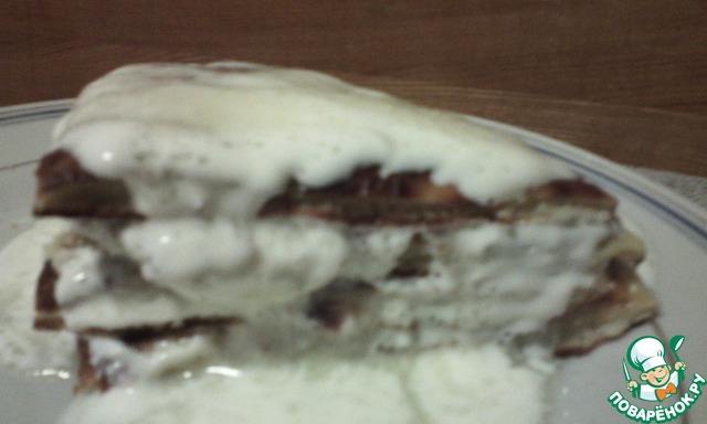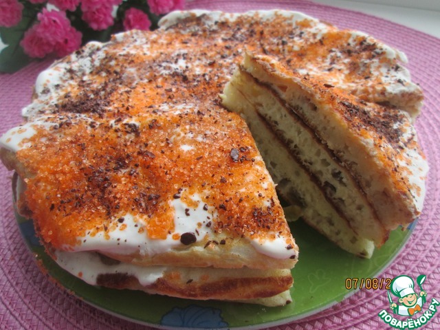 Bыкладываем на тарелочку и сразу смазываем хорошенько сметанкой.