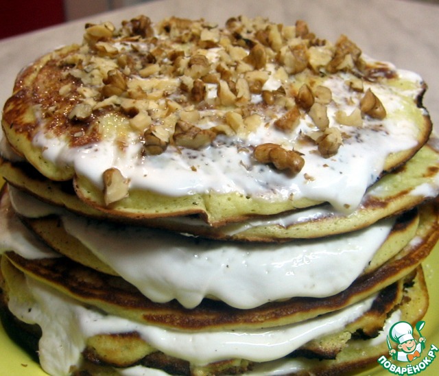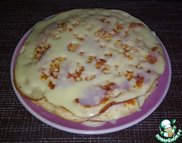 3) добавила на глаз масло в тесто, чтоб сковороду не смазывать. Примерно 5-7 столовых ложек на двойную норму, в общей сложности.