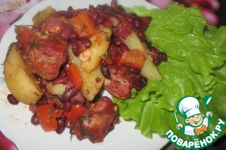 1. Мясо порезать на мелкие кусочки, поджарить на масле. Сложить в кастрюльку, долить водички, чтоб полностью покрыла мясо и поставить на маленький огонь.