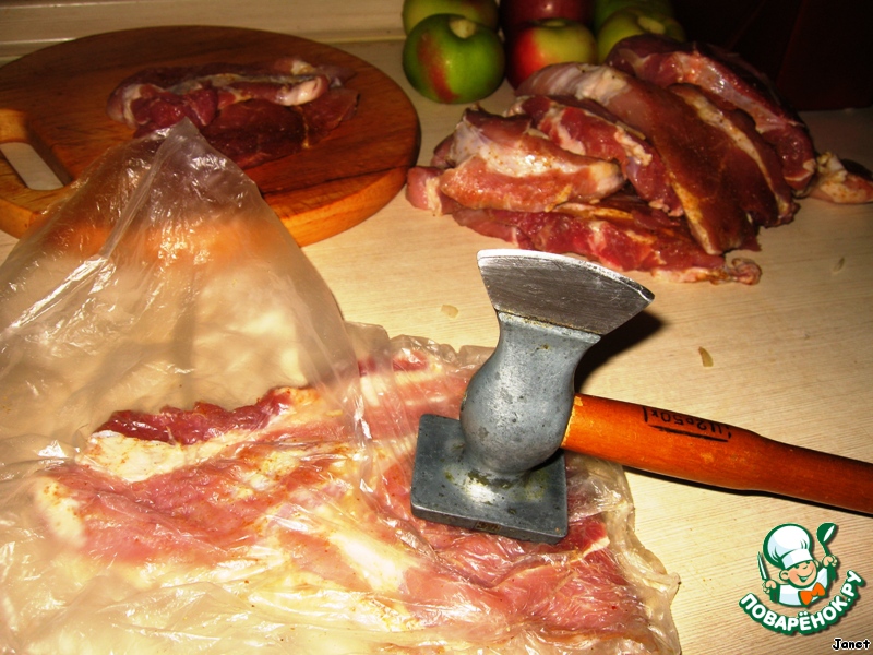 - Свинина (у меня лопатка,несколько кусочков по количеству гостей) — 10 шт