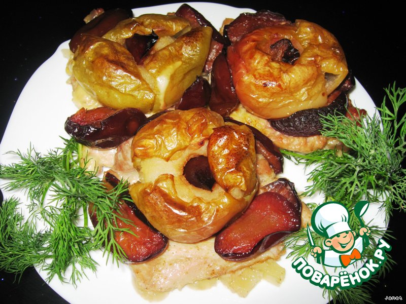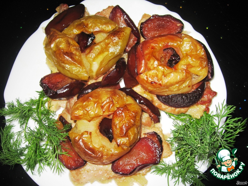 Очень люблю сочетание яблока, печeного со свининой. Решила добавить в этот раз и слив. Всем гостям понравилось мяско с фруктами!!! Попробуйте и Вы ароматное, нежное, сочное мясо!!!