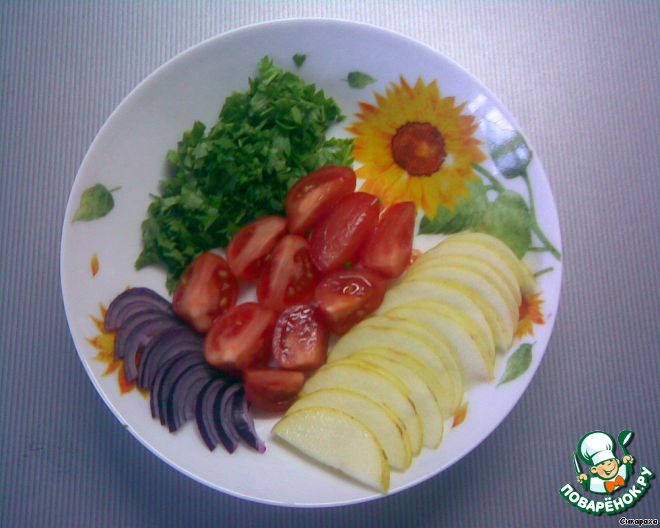 - Помидоры черри (у меня были свои мелкие) — 150 г