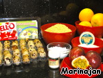 Необходимые продукты: оРЕхи, яйца пеРЕпелийные, апельСИн, желе чеРЕшни,