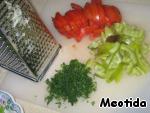 Одинаковыми брусочками нарезаем помидор (он должен быть плотным). Осенние помидоры восхитительны в этом салате или нужно удалить жидкую сердцевинку с косточками, если помидор сочный и мягкий.