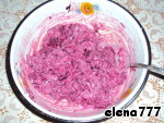 Свёклу натереть на крупной терке, добавить выдавленный чеснок, немного майонеза и перемешать. Можно чуть посолить.