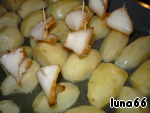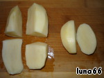 Очищаем и режем картофель. Средний на 2 части, а крупный на 4 части.