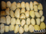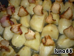 Наливаем на противень растительное масло и укладываем картофель ровным срезом вниз. Солим, перчим по вкусу.Солим немного (сало само отдаст соль картофелю). Ставим в разогретую духовку на 15-20 минут, чтобы картофель немного запёкся.