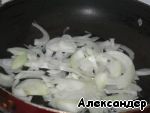 Готовим соус. В сотейнике обжариваем до "стеклянного" лук.