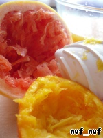 Фрукты тщательно моем. Апельсины разрезаем и выжимаем из них сок.