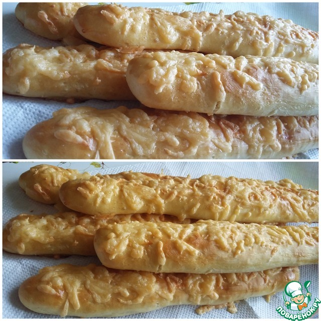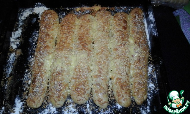 Отличные палочки, получились с первого раза, хотя с дрожжевым тестом не дружу особо. Сверху посыпала сыром и кунжутом. Подсели на них всей семьей, скоро в двери проходить перестанем))))