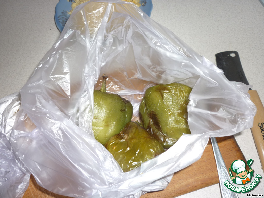 Вытягиваем перец из духовки и складываем в кулек. Оставляем минут на 20 для полной запарки.