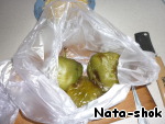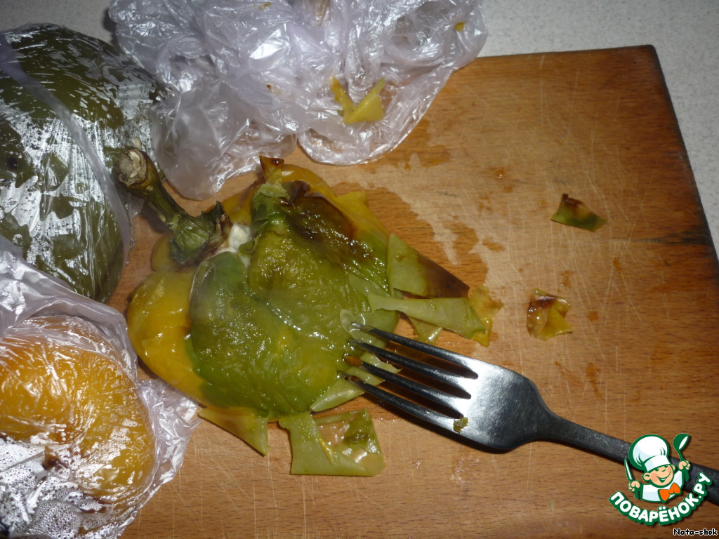 После вытягиваем перец из кулька и очищаем от шкурки и семечек.